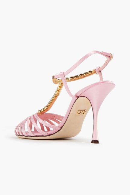 ₦1,560,000.00DOLCE & GABBANA Cutout leather-trimmed crystal-embellished T-bar satin sandals