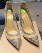 Step into the epitome of glamour and luxury with the Christian Louboutin Strass Women’s Heel, a dazzling masterpiece that commands attention with every step. Crafted from exquisite materials, this iconic heel features a sleek silhouette adorned with shimmering strass crystals, adding a touch of opulence to any ensemble. The signaturee sole, synonymous with Christian Louboutin, elevates the sophistication of this statement piece, while the pointed toe and stiletto heel exude timeless elegance. Whether paired with an evening gown for a formal event or styled with jeans for a night out, these heels are sure to turn heads and make a lasting impression. Embrace the allure of high fashion with the Christian Louboutin Strass Women’s Heel, available exclusively at Glamoholic Apparel.