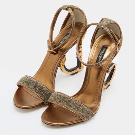 Casadei Silver/Gold Foil Leather Techno Blade Ankle Strap Sandals