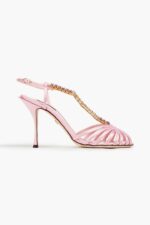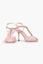 DOLCE & GABBANA Cutout leather-trimmed crystal-embellished T-bar satin sandals
