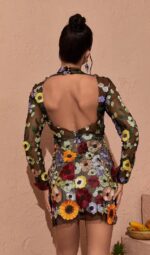 2 reviews for Floral embroidery backless long sleeve mini dress