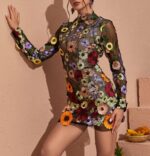 1. Embrace your feminine charm with this Floral Embroidery Mini Dress featuring intricate floral detailing.