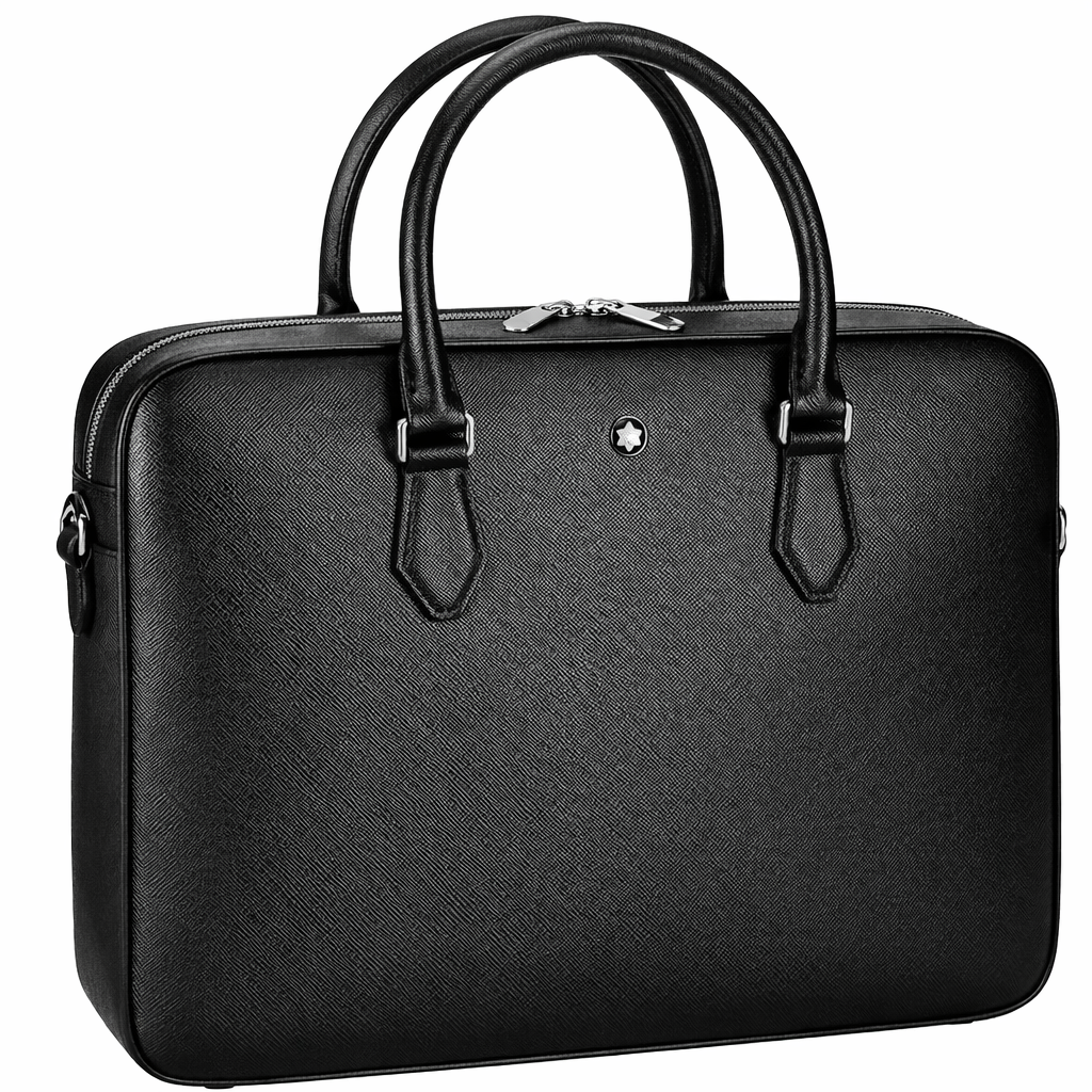 The Montblanc Sartorial Document Case by Montblanc is a refined black leather briefcase crafted for modern professionals. Made from durable cross-hatch textured leather, it features a structured silhouette that maintains its sharp shape over time.