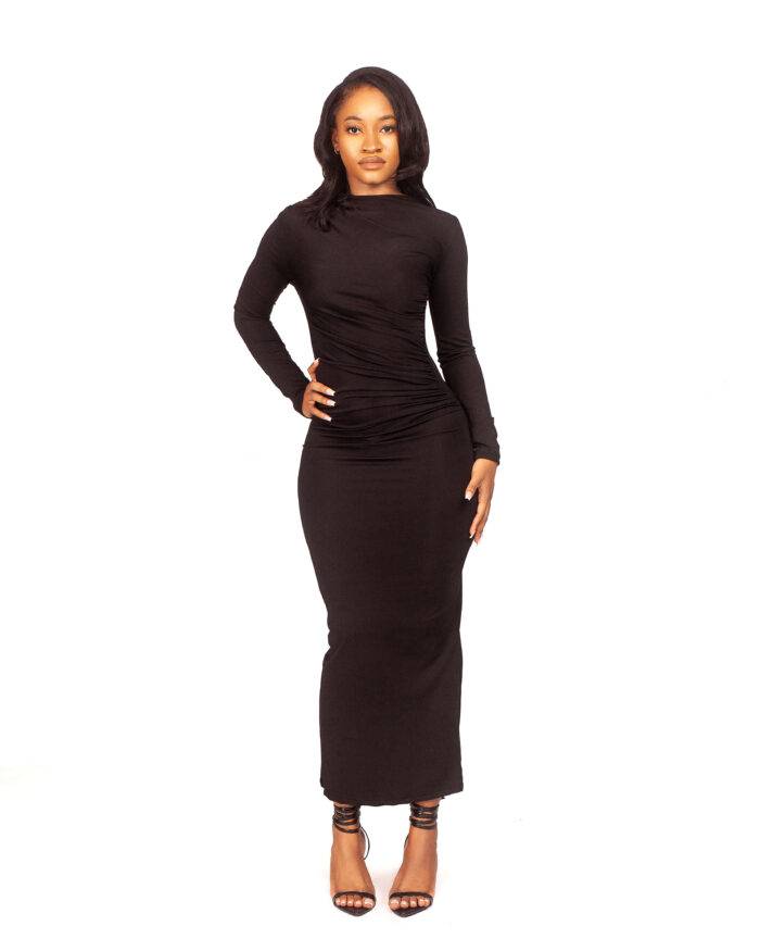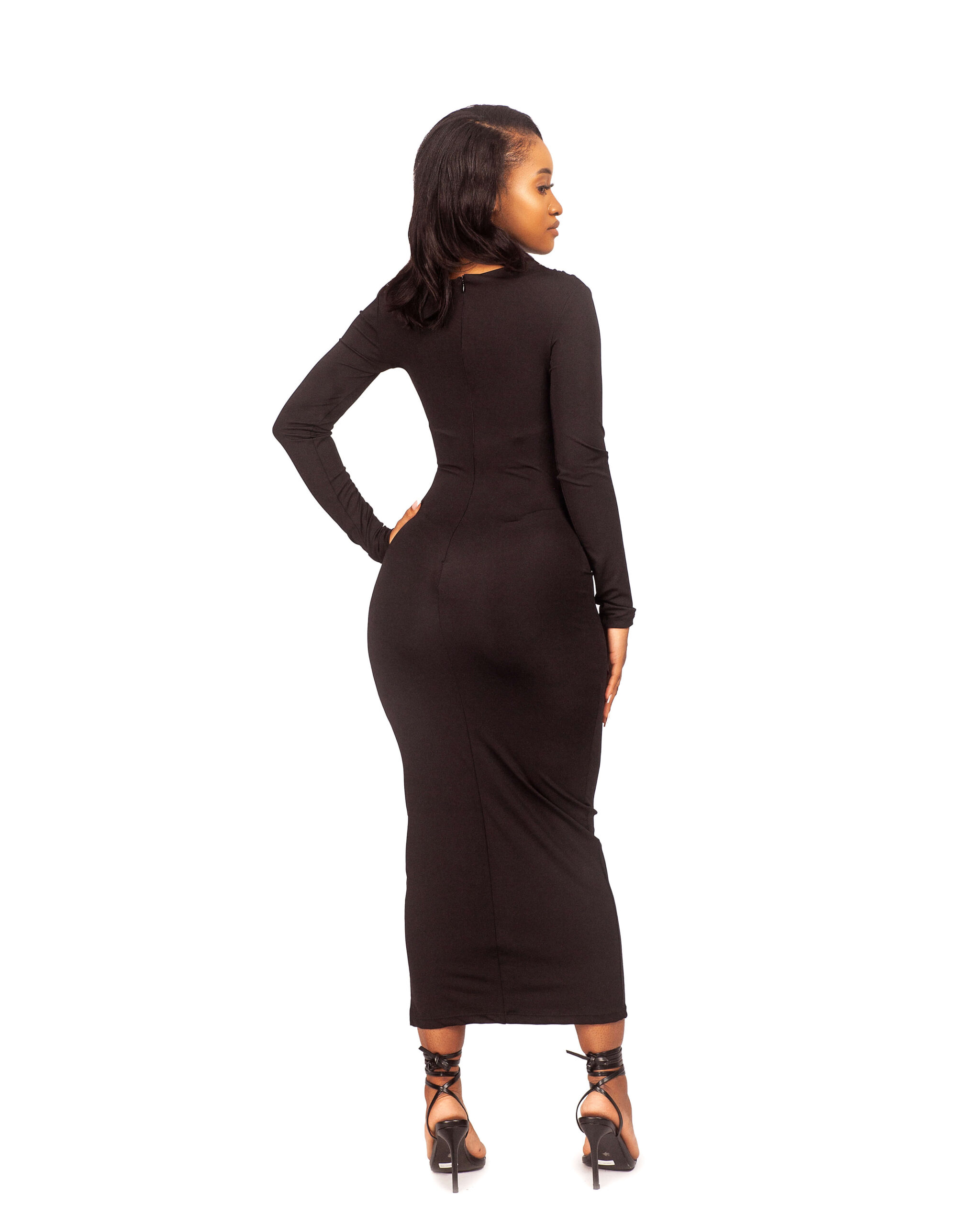 - Step into sophistication with the Side Ruffled Bodycon Midi Dress, crafted to enhance your silhouette and elevate your style.